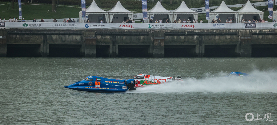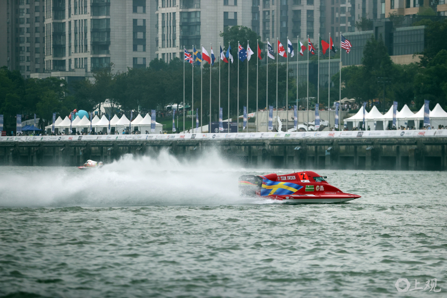 水上冲刺赛由20位全球顶尖赛手分为两组进行比拼,每组比赛仅有15分钟的时间。