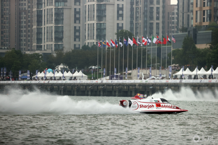 2025年10月3日下午,2025年世界F1H2O摩托艇锦标赛中国上海大奖赛冲刺赛打响。